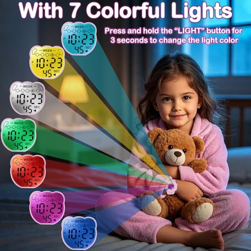 Trendy Design: The Kids Digital Watches for Teen Girls boast a modern aesthetic that appeals to young fashionistas while ensuring durability for everyday wear.7 Color Lights: This Waterproof Sports Watch for Kids features dynamic 7 color lights, adding a fun element to timekeeping and allowing for a personalized touch during any activity.Versatile Interchangeable Straps: Comes with 2 interchangeable straps, enabling your child to customize their watch to reflect their special style, whether sporty or chic.Essential Features: Equipped with a stopwatch and alarm, this watch not only tells time but also helps kids manage their schedules and activities efficiently.Perfect Gift Idea: A great present for girls ages 5-18, this multifunctional watch combines fashion and functionality, making it an excellent choice for birthdays, holidays, or special occasions. Perfect for everyday use. premium materials and excellent craftsmanship ensure long-lasting durability.