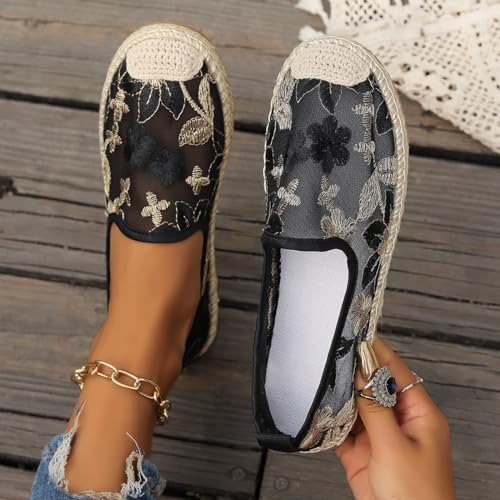 contemporary Embroidered Slippers: Exquisite flower embroidery covering flat shoes, not only make your slippers looks fashion, but with elegant and retro style. Making you keep stylish and comfy whether indoor or outdoorNormal wide closed toe type, flat heel design, more comfortable for walking. Suggested slim and normal feet type to wearUltra lightweight and ventilated design for maximum comfort and breathabilitySynthetic rubber sole for durability and traction on various surfacesOccasions: These mesh summer shoes are a perfect match for any dress, shorts, jeans, or casual summer outfit. Wear them for a date, shopping, work, the beach, vacation, driving, or everyday walking. Perfect for everyday use. first-class materials and excellent craftsmanship ensure long-lasting durability.