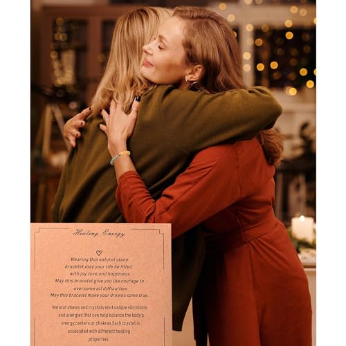 sturdy Healing Crystal Bracelet 8MM Genuine Stone Bracelet Lucky Beaded Bracelet Chakra Bracelet 6.5 inch Positive Energy Bracelet Inspirational Gifts for Women Mom