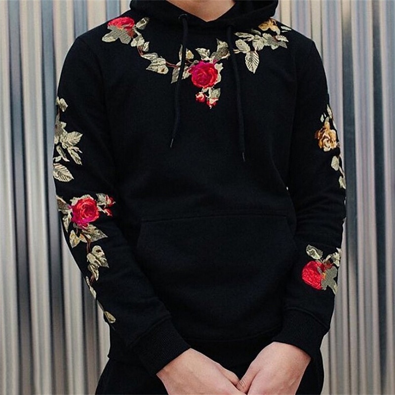 Highlights [Fabric] Crafted from high-quality polyester, this men's hoodie offers both warmth and comfort, making it ideal for the fall and winter seasons. The polyester material ensures durability while providing a micro-elastic texture for a snug fit. [Fit] This hoodie features a regular fit that balances comfort with style. Its relaxed silhouette allows for easy movement, perfect for both casual and streetwear looks. [Design Highlights] The hoodie is distinguished by its elegant floral graphics, strategically placed on the sleeves and near the shoulders to create a bold yet sophisticated appearance. It includes an adjustable drawstring hood that enhances both functionality and style. A practical front pocket adds convenience, making it ideal for daily wear. [Occasions] This versatile hoodie is perfect for various occasions, including daily outings, weekends, and holiday gatherings. Whether you're aiming for a relaxed look or want to infuse some flair into your everyday wardrobe, this hoodie caters to a broad range of events with its present-day floral design. [Size Range] Available in sizes M, L, XL, XXL, and 3XL, this hoodie caters to a variety of body types, ensuring a comfortable and flattering fit for everyone. Perfect for everyday use. premium materials and excellent craftsmanship ensure long-lasting durability.