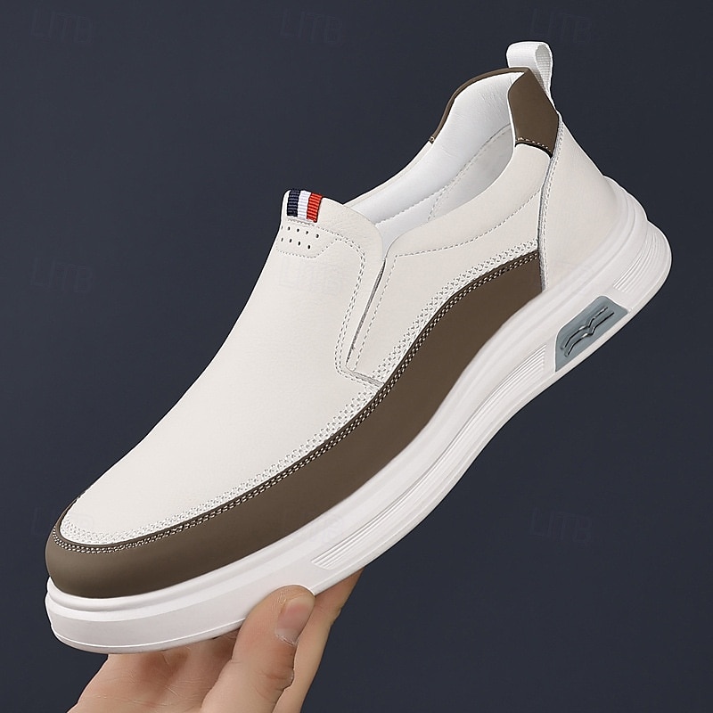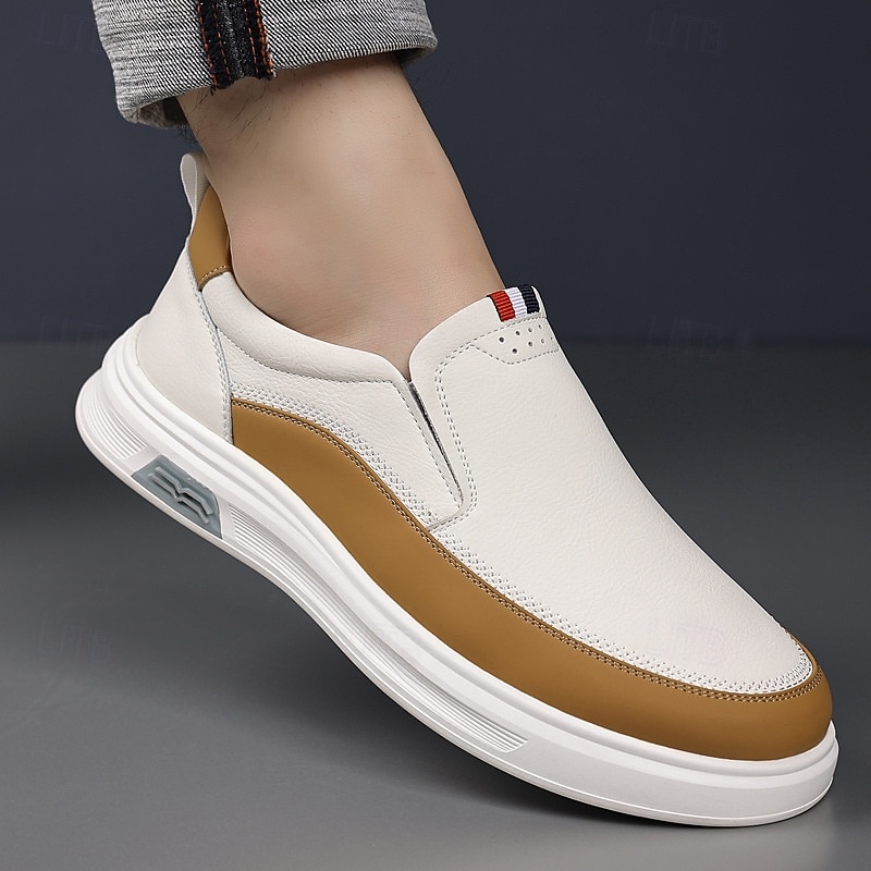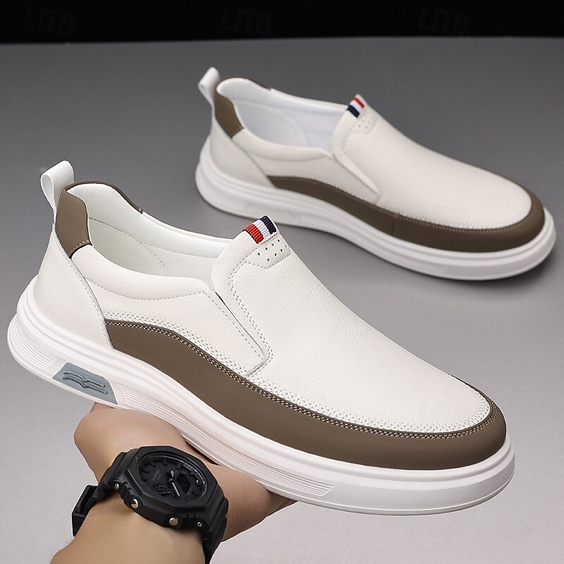 Why Choose Men's White Slip-On Sneakers with Brown Accent and cozy Rubber Sole – Casual Footwear for Everyday Wear and Weekend Outings?