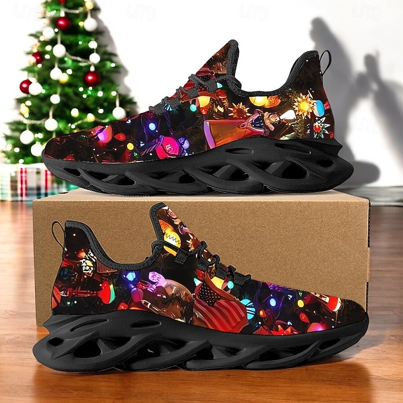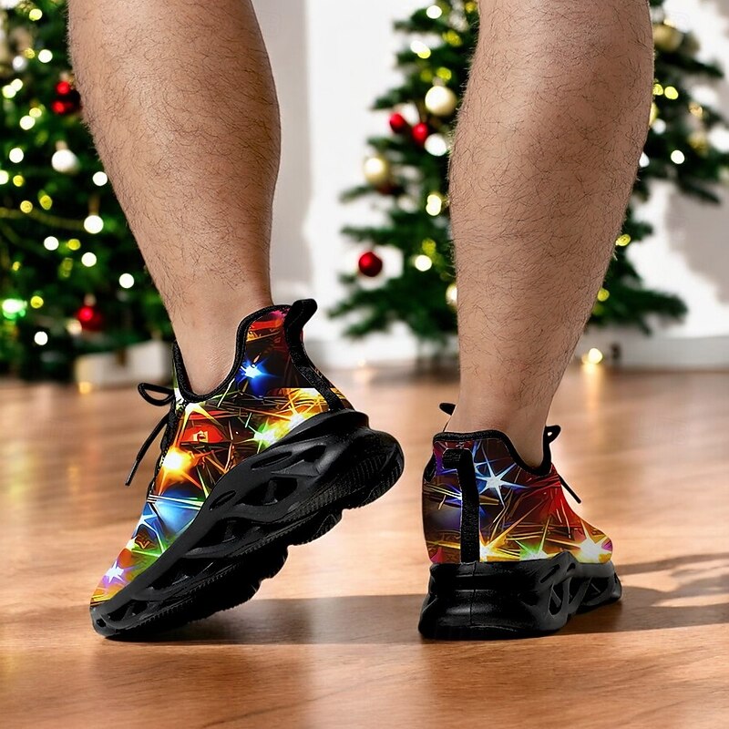 Why Choose Men's Festive Christmas LED Light-Up Print Sneakers – Vibrant Holiday Glow Design with Black Sole?