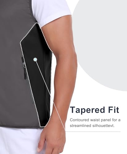 Fabric type: 95% Polyester, 23% ElastaneCare instructions: Machine WashOrigin: Imported【Functional Pocket System】 Up to 5 functional pockets, give you ample space to carry phone, wallet, keys, and more.【Reflective for Night Runs】 Enhances visibility during early morning or evening jogs. Safety meets style with contrast trim and sleek colors.【Weather-Resistant Design】 Balance rain protection with breathability. Perfect for unpredictable outdoor conditions.【Stretch & Freedom】 4-way stretch fabric with elastic armholes lets you move freely. Whether swinging on the golf course or climbing a trail, nothing holds you back.【All-Season Active Vest】 Lightweight yet warm with windproof & breathable shell—ideal for running, hiking, golf, or travel. Stay dry and soft even in chilly, damp weather. Perfect for everyday use. first-class materials and excellent craftsmanship ensure long-lasting durability.