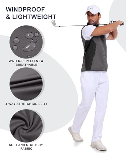 Little Donkey Andy Men's Water-resistant Outerwear Vests, Stretch Windproof Vest for Cycling, Running, Golf