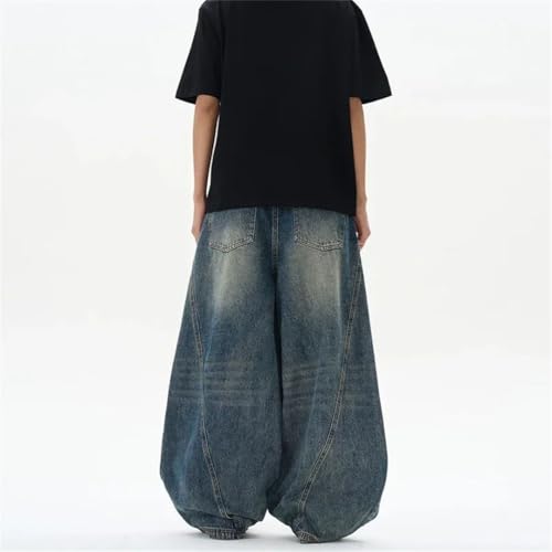 Men's American Retro Jeans Street Curved Pants Loose Wide Leg Washed Pants