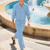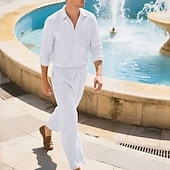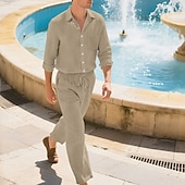 Highlights - Perfect for both spring and fall seasons - Made with high-quality linen fabric - Features a trendy long sleeve design - Designed for men's casual wear - Includes a 2-piece outfits set - Ideal for vacation wear - Finished with a vintage lapel neckline