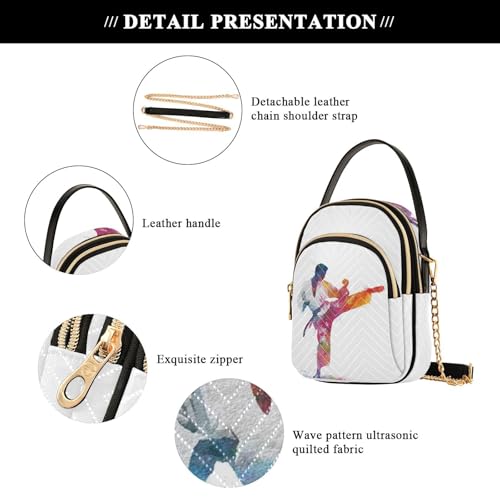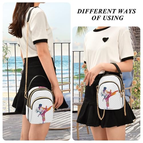 Watercolor Taekwondo Print Crossbody Bags for Women Detachable Strap Purses Shoulder Bag Travel Handbags 4