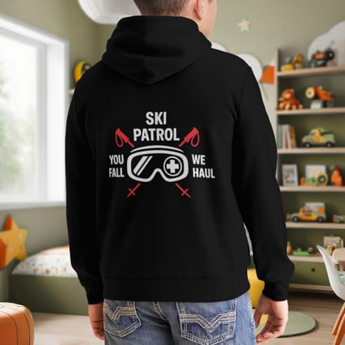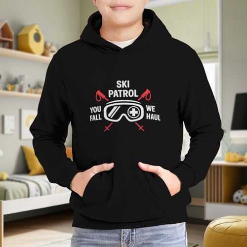Kids VIntage Ski Patrol You Fall We Haul Boys Girls Lightweight Kangaroo Pocket Fleece Hoodies