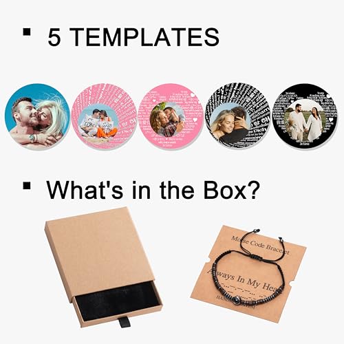 EMIRISTIC Personalized Photo FlatKnot Bracelet With Picture Inside - Morse Code Bracelet - Custom Gift Any Special Day