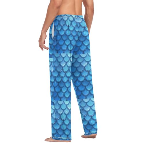 Men’s Blue Mermaid Scales Pajama Pants with Pockets, plush Lounge Sleep Bottoms#313