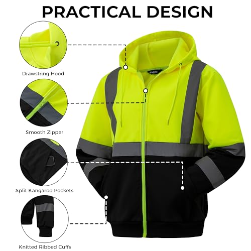 wantdo Hi Vis Reflective Hoodie Fleece Safety Sweatshirts for Men with Black Bottom