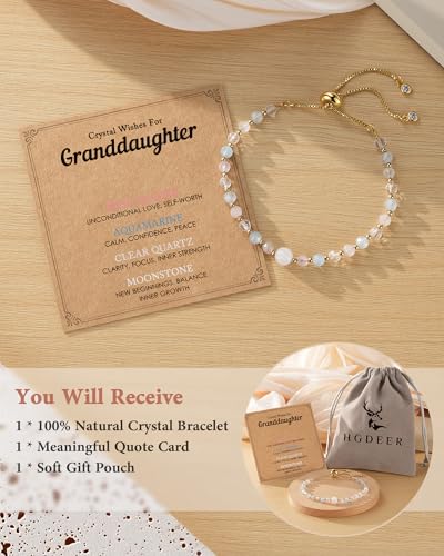 sizzling ! HGDEER Granddaughter Bracelet Gift - Natural Crystal Healing Stones with Meaningful Quote Card - Rose Quartz Moonstone Jewelry from Grandparents