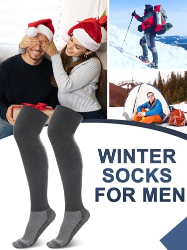 2 Pair Men's Heavyweight Merino Wool Blend Boot Socks over the Knee Thermal Winter Tall Boot Socks for Men