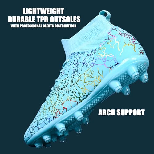 HESBITEUL Soccer Cleats for Men Women Football Turf Boys AG Spikes Youth High Top Firm Ground Big Kids Soccer Sneaker