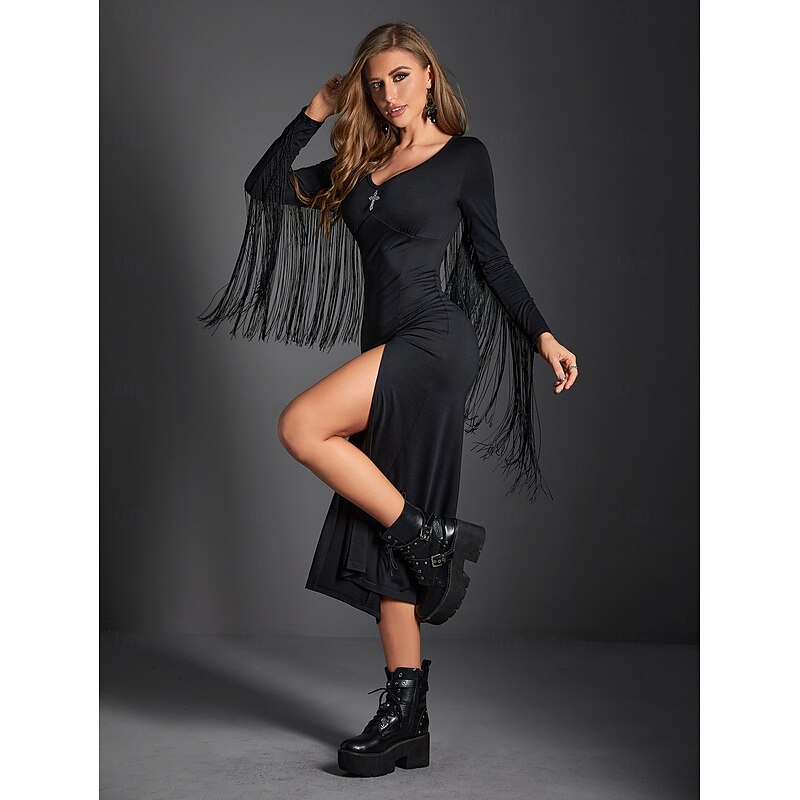 $34.99 - Gothic Midi Dress Bell Sleeve Witch Morticia Addams Fringe Slit Solid Color Sheath / Column V Neck Fancy Dress Women's Fantasy Halloween Carnival Performance Party Adults Dress 2025. Shop for cheap Dresses online? Buy at lightinthebox.com on sale today!