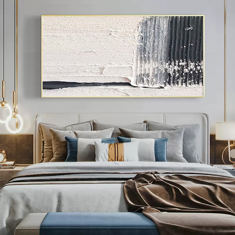 Why Choose Oil Painting Handmade Hand Painted Wall Art Black-White Abstract Canvas Painting Home Decoration Decor Stretched Frame Ready to Hang?