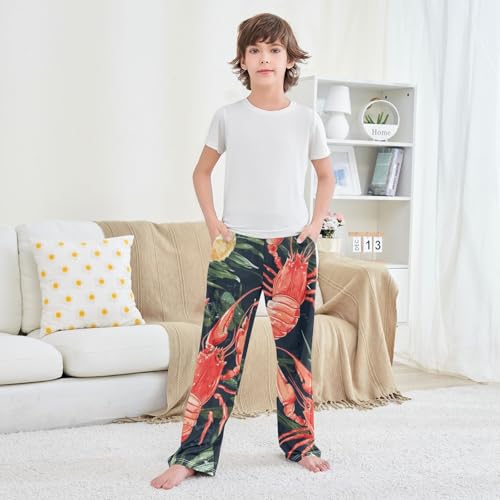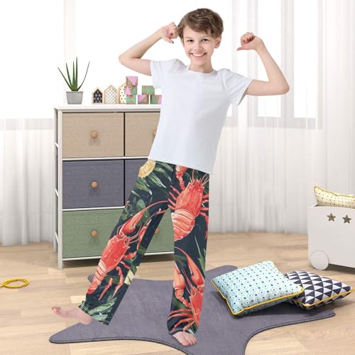 ZZXXB Tropical Lobsters Boys Long Pants smooth Trousers Elastic Waist Kids Lounge Bottoms with Pockets S-XL