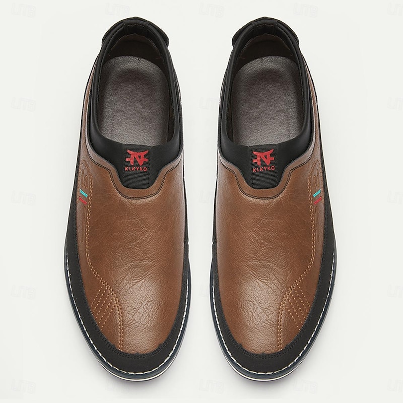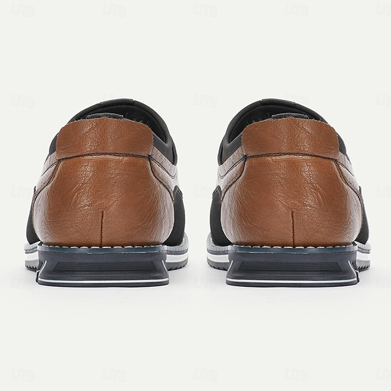 Men's Casual Slip-On Loafers - Brown and Black Breathable Leather Shoes for Everyday Wear 1