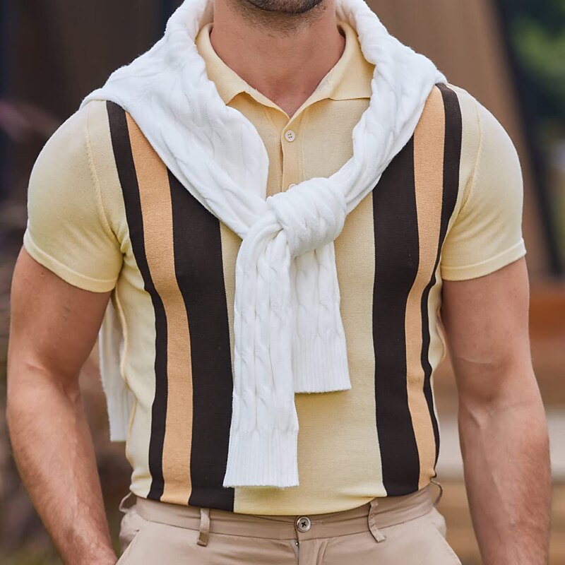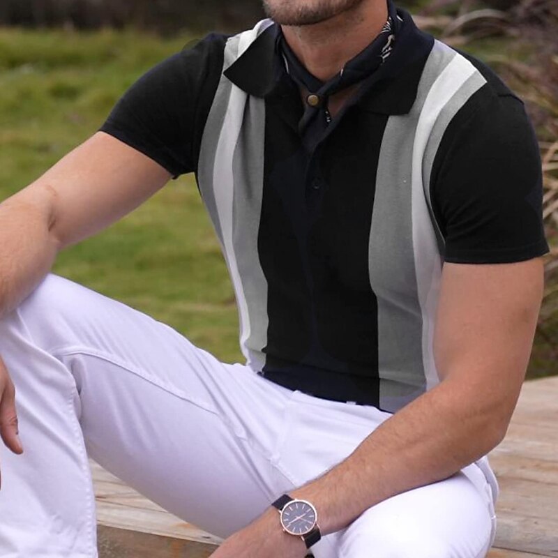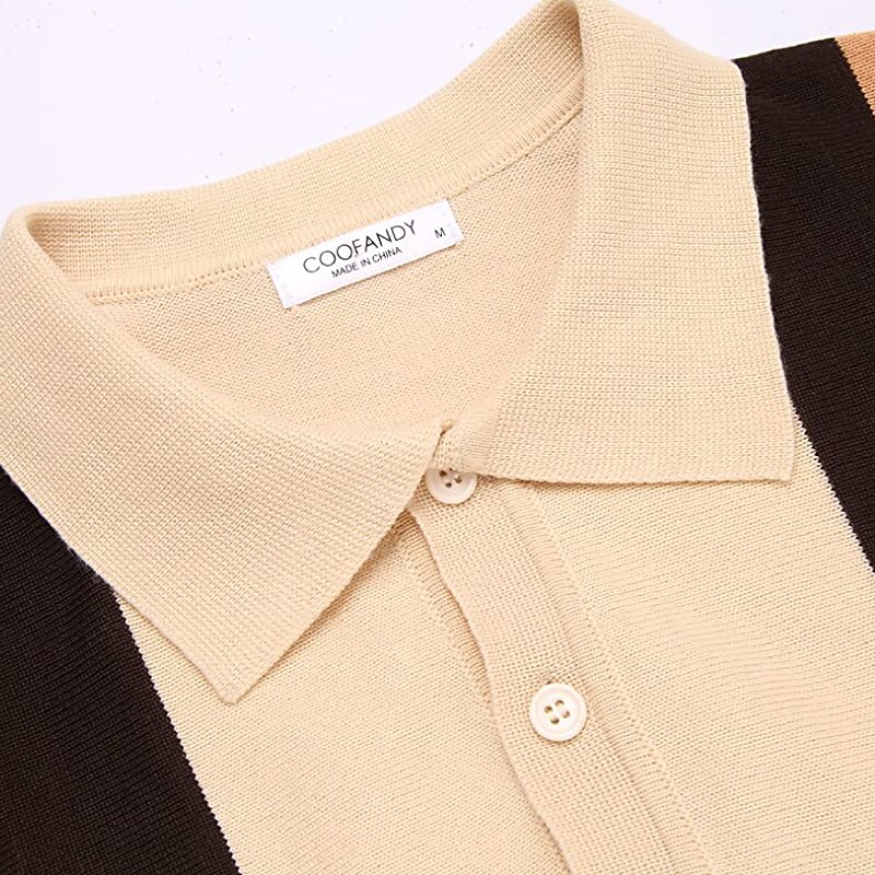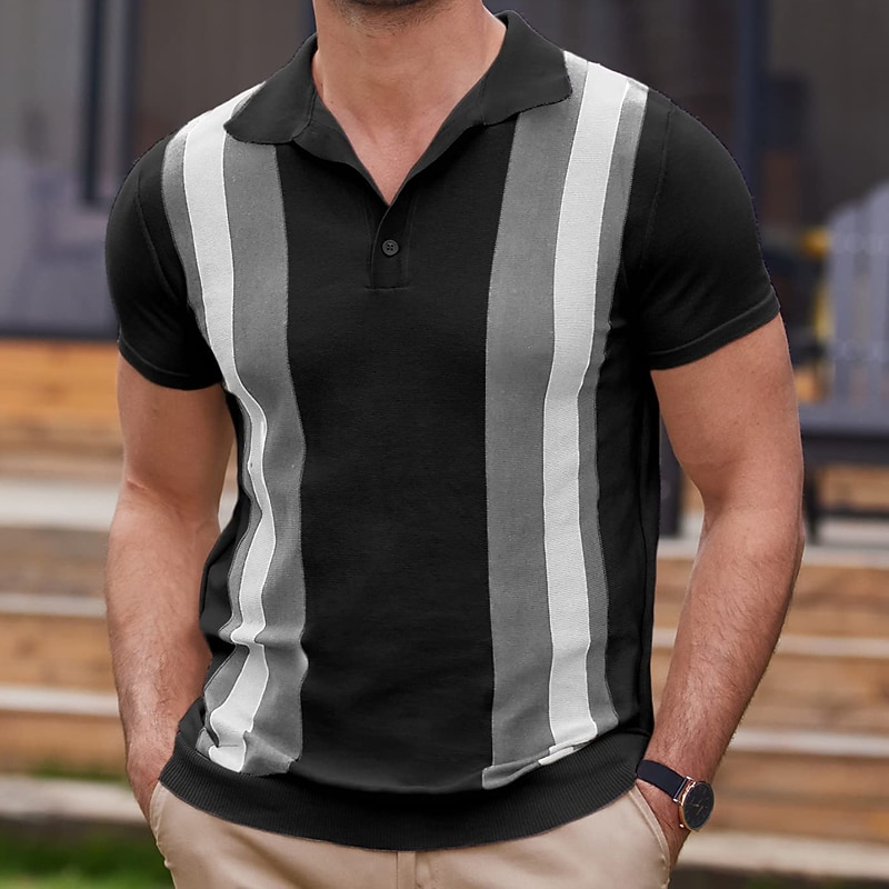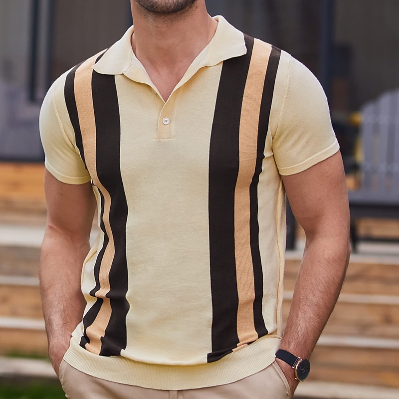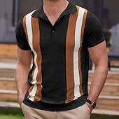 More information about Men's Golf Shirt Knit Polo Casual Daily Lapel Short Sleeve Vintage Stylish Striped Button Summer Black Brown Apricot Golf Shirt