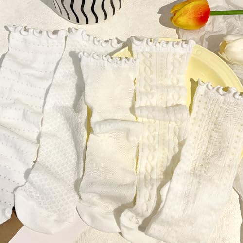 Why Choose Sweet White Mesh Lace Socks, Women uncomplicated Solid Color Mid Calf Sock, Fashion Thin Breathable Crew Stockings?