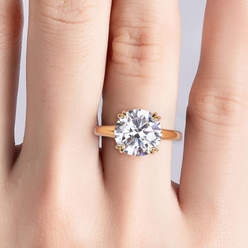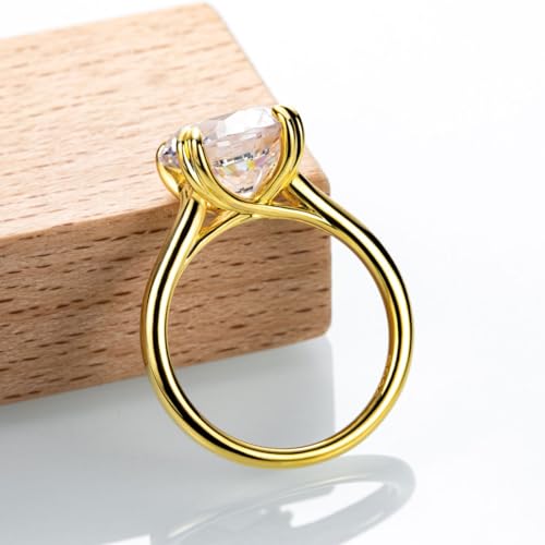 sizzling ! Bo.Dream Round Cut 5 Carat Cubic Zirconia Solitaire Engagement Rings for Women 14K Gold Plated Sterling Silver