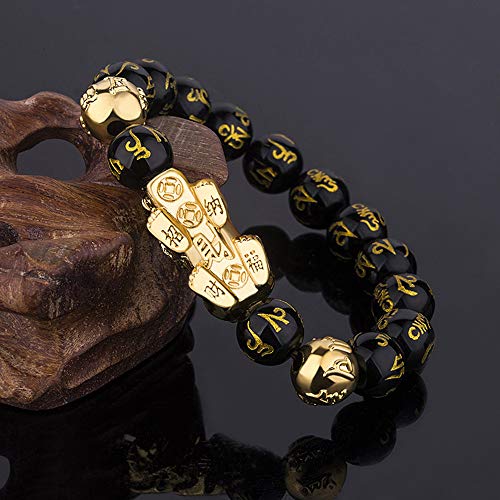 Material: StoneMetal type: CopperClasp type: No ClaspChain type: Bead Chain10MM BEAD GOOD LUCK BRACELET FOR WOMEN MEN: Pi Xiu also named Pi Yao, this Chinese dragon can bring good fortune and wealth money. Pi Xiu is deeply popular for Chinese, It can wash away the inner nervous, bring good luck and getting you back to your spiritually, emotionally, mentally and physically healthy selfOBSIDIAN BEAD BRACELET MATERIAL: Natural stone bead, come with a easy to store flannelette gift pocket. Natural stone bead possess low density and light weight. Its cool feeling of the black obsidian beads bracelets in hands can make the anxiety calm downNATURE STONE BEADS BRACELET SIZE: The lucky charm bracelets made of 10MM nature obsidian stone, inner length is approx 7 inch, perfect for gifts, for mens women couple friendship feng shui bracelet, good luck bracelet perfect gift for anyoneMENS BEAD BRACELET SET DETAILS: As the temperature changes, the Pixiu will change its color. It can can sense your temperature. The Symbol on the beads are sanskrit mantra honours Ganesh. Ganesh embodies wisdom, new beginnings luck and wealthATTENTION: This pixiu bracelet should be worn on left hand both men and women. Fengshui is left in and right out, which means that luck enters with the left hand and exits with the right hand. Wear feng shui bracelet with the head of the pixiu facing outward. Pixiu can be worn with other jewelry. If you find dust when you wear it for a long time, you can wipe it with water or a velvety cloth Perfect for everyday use. first-class materials and excellent craftsmanship ensure long-lasting durability.