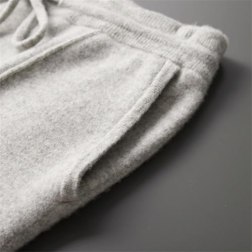 Men's Merino Wool Pants Winter Thick Smart Casual Knitted Mid Seam Elastic Waist Sport Trousers