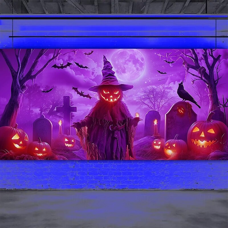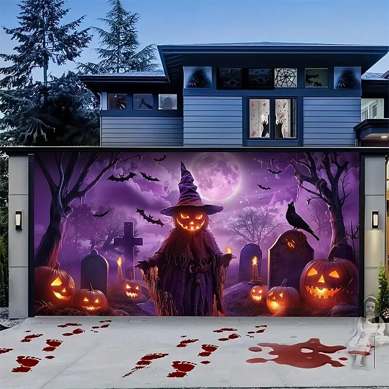 $34.99 - Halloween Garage Door Cover Neon Scarecrow in Haunted Graveyard Banner, Glowing Blacklight Backdrop Decoration for Holiday Outdoor Garage Door and Home Wall, 2025 Halloween Decorations 2025. Shop for cheap Halloween Garage Door Cover online? Buy at lightinthebox.com on sale today!