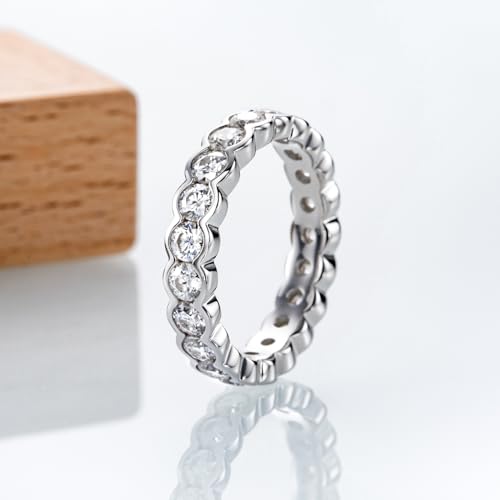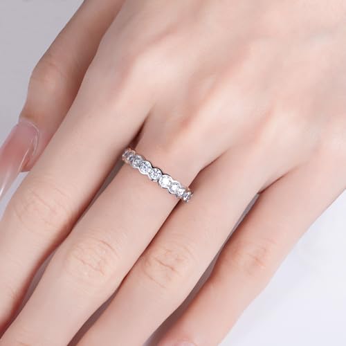 Bo.Dream Eternity Rings, 3mm Round Cut Bezel setting Cubic Zirconia 925 Sterling Silver Wedding Band Ring for Women 5