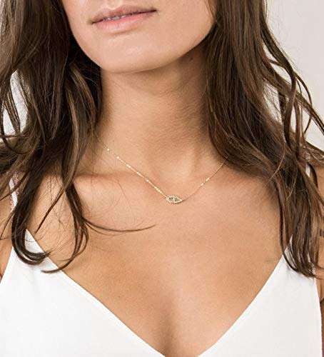 MEVECCO Gold Dainty Evil Eye Necklace for Women 18K Gold Plated Cute Delicate Solitaire Cubic Zirconia Boho Protection Evil Eye Minimalist basic Necklace