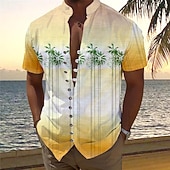 Men's Palm Tree Tropical Plants Summer Hawaiian Shirt Aloha Shirt Printed Shirts Short Sleeves Shirt Standing Collar Hawaiian Resort Vacation Holiday Daily Wear Yellow Blue Orange S M L