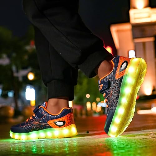 • LED Light Up Sneakers for Kids – Fun & Safe : These light-up sneakers are designed to dazzle with every step! Featuring vibrant LED lights on the soles that glow in multiple colors, they make walking, running, and playing more exciting and fun for boys and girls. Safe, non-toxic materials ensure peace of mind for parents.