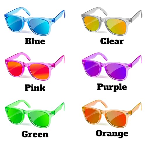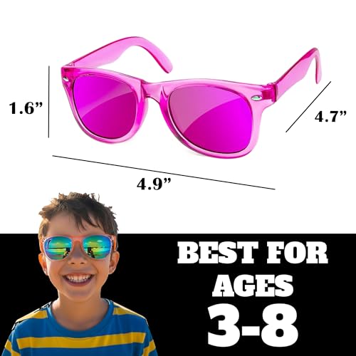 Customizable Party Favors: Add a personalized message to each pair, creating unique and memorable gifts for birthdays, pool parties, or any children's event. A fantastic way to thank guests or celebrate a special day!Essential Eye Protection: Equipped with UV400 lenses to block 100% of harmful UVA and UVB rays, ensuring safety and protection during all their outdoor adventures.Durable & Kid-Friendly Design: Made from sturdy, high-quality plastic, these sunglasses are built to withstand rough play and drops. The perfect size for children ages 3 to 8.Fun, Holographic Lenses: The unique holographic lenses add a cool, contemporary touch that kids will love, making them eager to wear them and show them off.Assorted Vibrant Colors: Each pack includes a mix of exciting colors—perfect for matching any party theme or giving children a fun color to choose from. Perfect for everyday use. first-class materials and excellent craftsmanship ensure long-lasting durability.