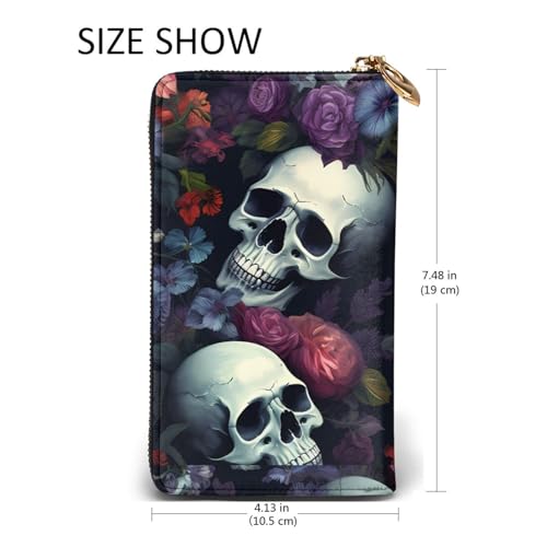 Horrible Dark Skulls Flowers Pattern Picture Leather Long Clutch Wallet for Fashionable Girls and Women - tough, sophisticated, and Functional, Black, One Size