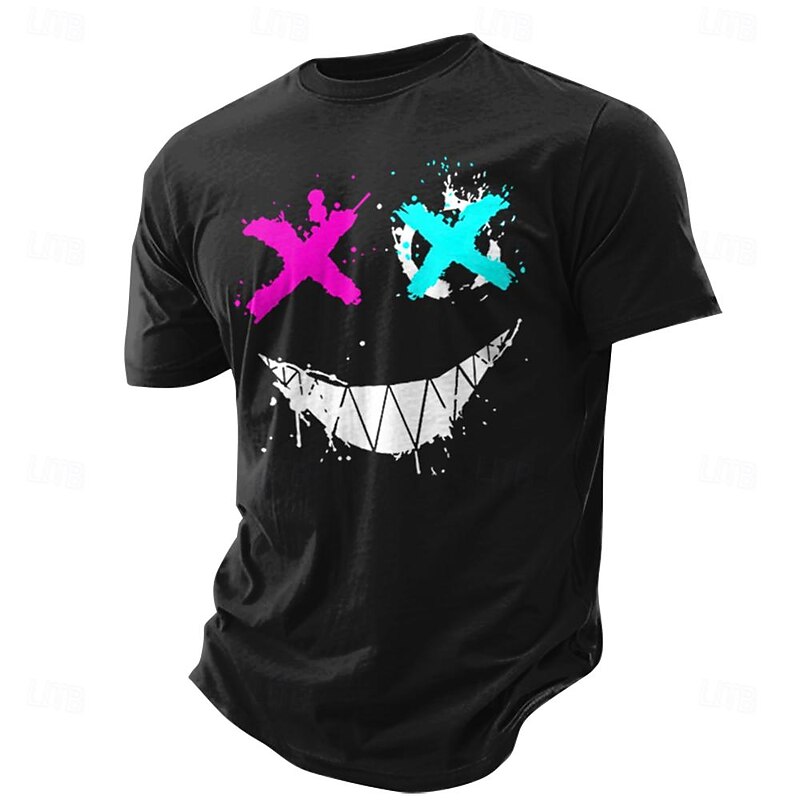 More information about Edgy Paint Splatter X Eyes Smile Men's Short Sleeve Graphic Tee