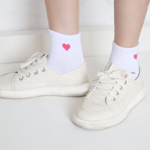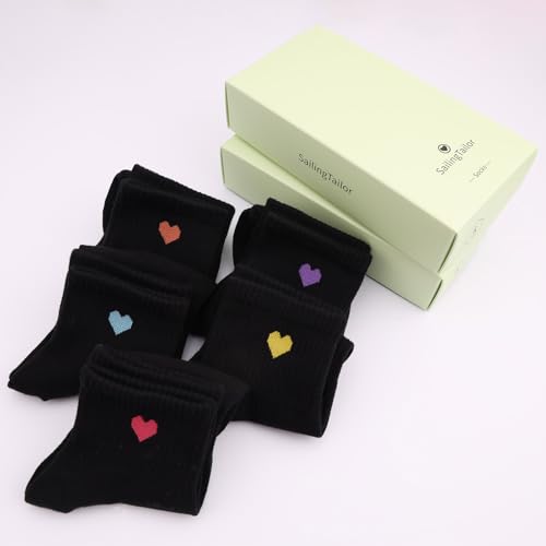 5 Pairs Solid Color Heart Socks Casual Above-ankle Crew Socks for women, Packaged with Present Box