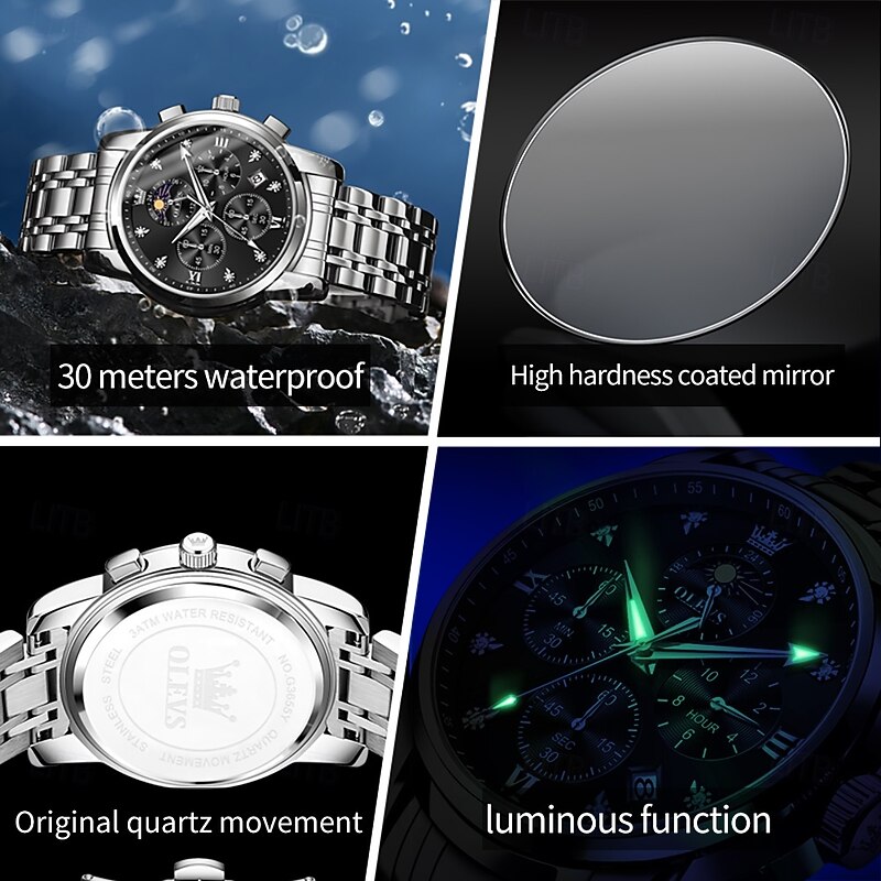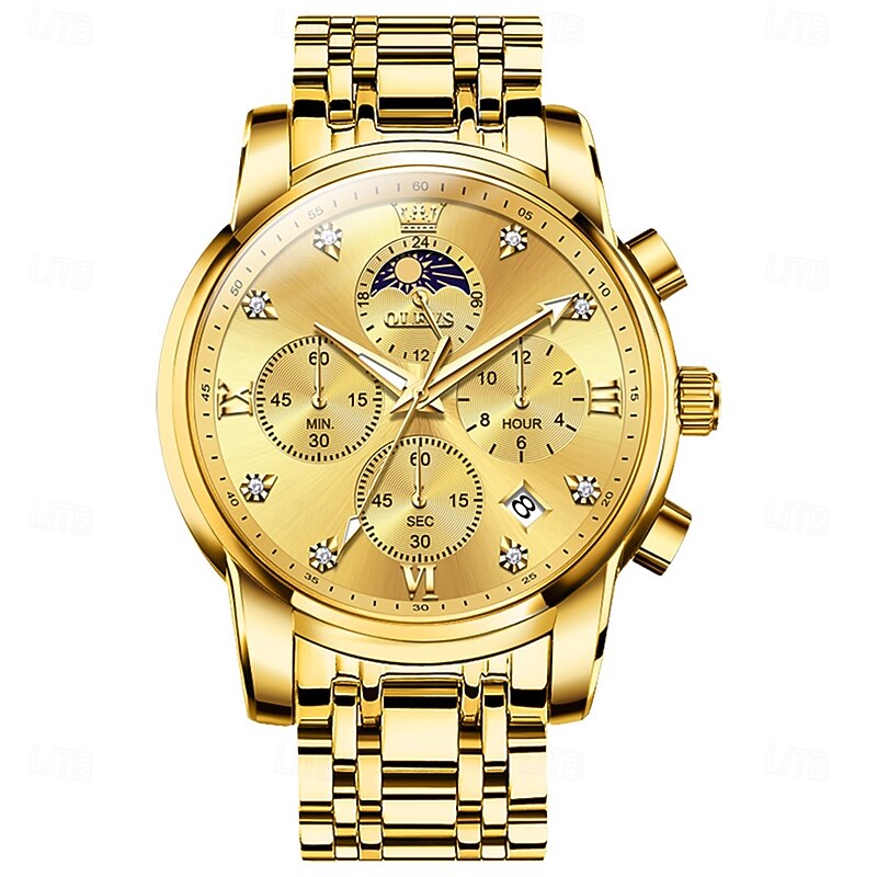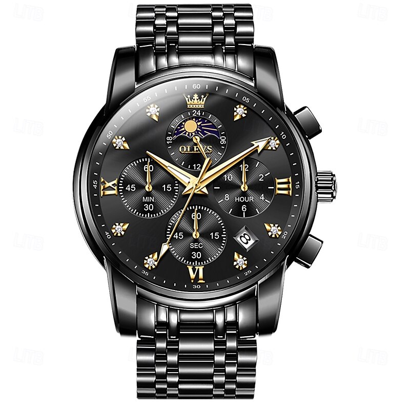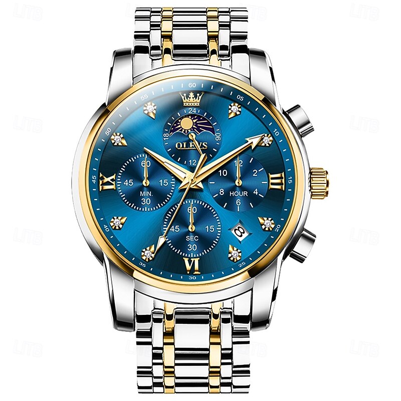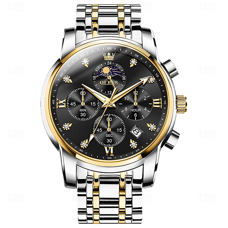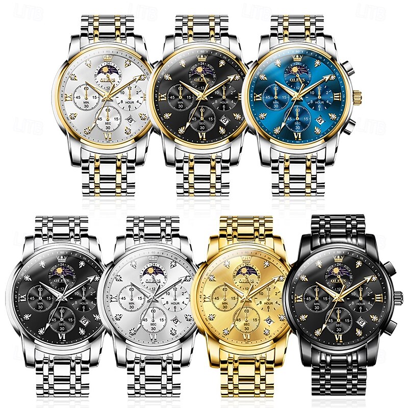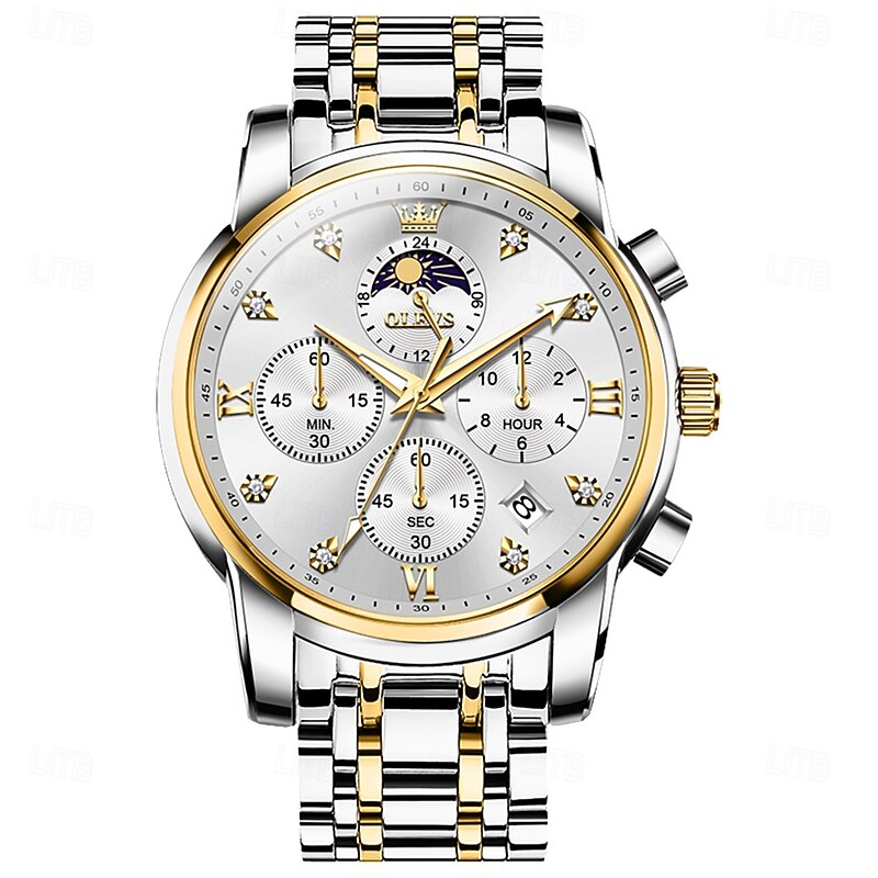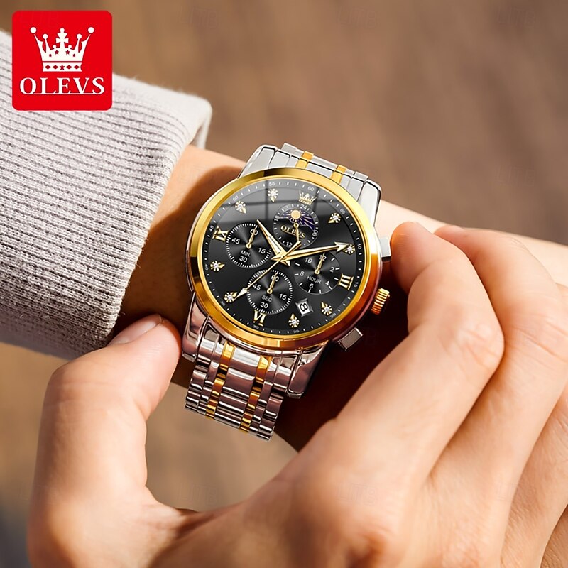 $41.99 - OLEVS 3655 Moon Phase Classic Three Eye Dial Men's Watch Stainless Steel Watch for Male Butterfly Buckle Waterproof Quartz watch 2025. Shop for cheap Quartz Watches online? Buy at lightinthebox.com on sale today!