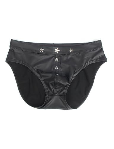 • Comfortable and Form-Fitting Fit: The stretch PU leather ensures flexibility and movement, allowing you to stay comfortable throughout the day or night. The elastic waistband sits securely on your hips without digging in, ensuring all-day wearability. Whether you're hitting the club or lounging at home, these briefs offer both style and comfort