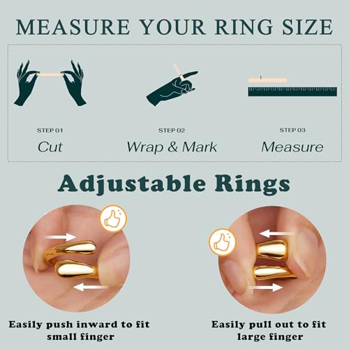 Inerney Gold Chunky Rings for Women Non Tarnish, 14K Gold Plated Adjustable Rings for Statement, Stackable Thumb Pinky Bands Comfort Fit Size 5-11 for Jewelry Gift