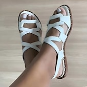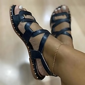 Highlights [Fabric] The Women's Multi-Color Strappy Sandals are crafted from soft, high-quality faux leather, providing a cushy and flexible fit for all-day wear. The material is gentle on the skin and durable enough to withstand frequent use during the summer months. [Shape] Featuring a casual open-toe design, these flat sandals offer a minimalist style with a flat heel that provides added stability and comfort. The strappy design ensures a secure fit, making them suitable for everyday use. [Design Highlights] These sandals boast an elegant touch with subtle gold studs adorning the edges of the soles, elevating their overall look with a hint of sophistication. The crisscross strap design not only enhances comfort but also adds a fashionable flair to your ensemble. [Occasions] Perfect for a variety of casual outings, these sandals are ideal for daily wear, beach excursions, and leisurely summer walks. Their versatility makes them an excellent choice for complementing a wide range of outfits from day to day. [Size Range] Available in sizes 36 to 43, these sandals offer a broad selection to accommodate various foot sizes, ensuring a comfortable and secure fit for many. Perfect for everyday use. superior materials and excellent craftsmanship ensure long-lasting durability.