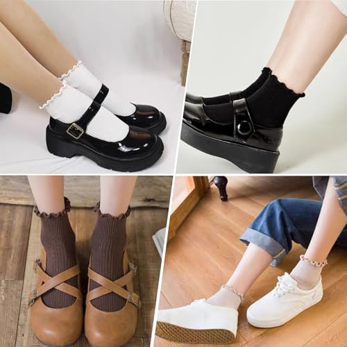 Fabric type: 80% Cotton,15% Nylon,5% SpandexCare instructions: Machine WashOrigin: ImportedFit type: RegularMaterial & Size: These women's ruffle socks have enough elasticity and are suitable for most US women's shoe sizes 5-9. These ankle socks are not easy to rub the skin and has a good sweat absorption effect.Soft & Breathable: The women crew socks are made of 80% combed cotton with double needle technology, making socks softer and more breathable, and never go out of style. These women's cute socks match with women's sneakers, sandals, casual, sports or formal shoes.Ruffle Cuff with Band Design: Women's ankle socks feature elegant cascading ruffles. The ruffle design is very fashionable, making your outfit more eye-catching and one-of-a-kind. The elastic band at the cuff makes the socks less likely to slip off, keeping you comfortable and at ease all day.Cute Socks for Women: You can wear them as office, hiking, sport, school, home, work, prom, party and ankle socks. We also have a variety of color combinations to choose from, allowing you to match them freely in any occasion.Perfect Gifts for Women: Perfect gift choice for mother, girlfriend, sister, daughter, bestie and friends. You can send these socks as mother's day gifts, valentine's day gifts, birthday gifts, Christmas gifts, New Year gifts and wedding gifts to someone you care about. Perfect for everyday use. first-class materials and excellent craftsmanship ensure long-lasting durability.