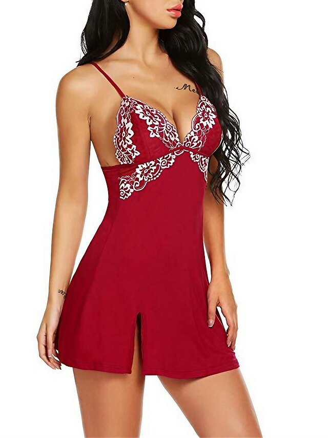 More information about Women's Valentine Night Dress Sexy Lingerie Lace Dress Strap Dress Mini Dress Cozy Backless Solid Color Strap Home Lounge Black Red Summer Spring Home Outfits Date Night Outfit