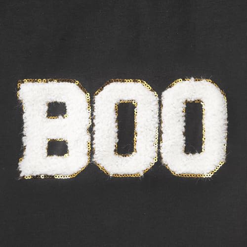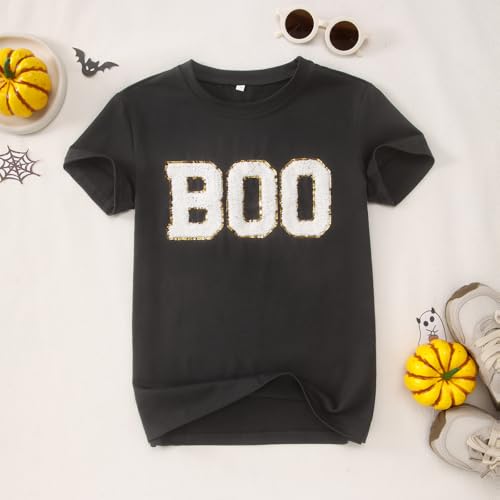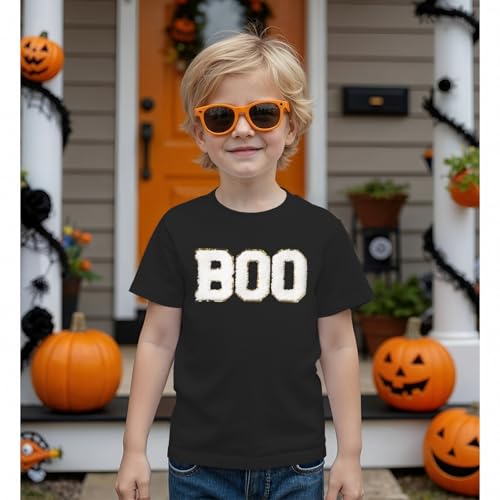 Girl Boy Halloween Shirts Kid Glitter Boo Chenille Patch T-Shirt Embroidery Spooky Season Tee Fall Short Sleeve Top