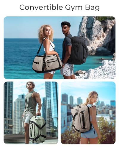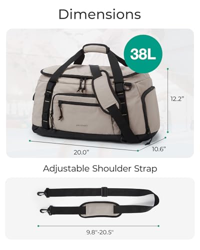 38L Space Architecture: This sports duffel bag offers impressive capacity and functionality. The spacious main compartment easily fits a 14 laptop, 6 textbooks, and 8 workout outfits while keeping its shape. Inside, a lockable mesh pocket secures credit cards, and a quick-access sleeve is perfect for gym supplements. Whether you're heading to the mountains or a yoga class, this duffel ensures your essentials are always in the right placeCarry-on Baggage Size for Flights:This TSA-friendly duffel bag slides under airplane seats like it owns first class, with exterior quick-grab pockets for boarding passes and noise-canceling headphones. The luggage sleeve grips rolling suitcases with the tenacity of your deadlift grip. Reinforced base panels prevent bag slump during 14-hour layovers. Pro tip: The structured silhouette fits carry-on dimensions perfectly – ideal for jetting between fitness expos and alpine hikesTactical Pocket Ecosystem: Tackle any adventure with military-grade organization. The gym bag features a waterproof PE pocket for wet gear and a separate shoe compartment to keep shoes apart from clothes. Quick-drain side pockets allow for easy storage of water bottles or damp items without spills. Ideal for gym sessions, outdoor sports, or weekend getaways, this duffle bag is your ultimate companion for convenience and functionality4-Way Carry Versatility: Designed for urban adventurers and gym enthusiasts, this 20.0”×12.2”×10.2 (1.15 lbs) convertible gym bag adapts to your lifestyle. Switch between 4 carry modes effortlessly: padded handles for quick gym trips, an adjustable crossbody strap for airport runs, sturdy backpack straps for hikes, and a luggage sleeve for easy travel. Its sleek compression-molded design keeps you looking sharp, whether you're hauling weights or weekend gearSweat-Proof Performance DNA:BAGSMART engineers sweat the details so you can focus on sweating better. The exterior laughs at monsoon rains and chalk explosions. velvety handles mimic your running shoes' cushioning, while dual-side zippers glide smoother than a Peloton leaderboard climb. Premium gear should outlast your fitness resolutions Perfect for everyday use. first-class materials and excellent craftsmanship ensure long-lasting durability.