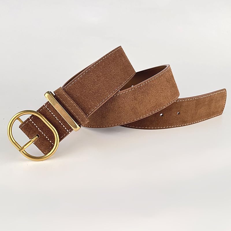 Wide Suede Belt Ladies Women Genuine Leather Belts Fashion Thick Brown Waist Belt with Gold Buckle for Jeans Dress Casual 3