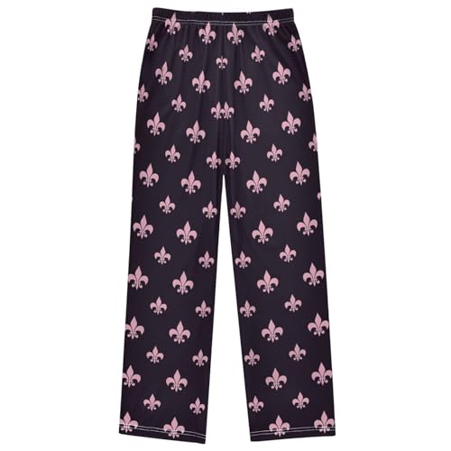 Boy's Pj Pants Pink Black Fleur De Lis Lounge Bottoms Elastic Waist Kids Joggers with Pockets Size 6-14