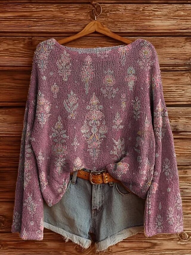 Why Choose Women's Sweater Casual smooth Floral Vintage Ethnic Long Sleeve Crew Neck Regular Tops Daily Holiday Print Wine Red Purple Fuchsia Spring Fall Winter?