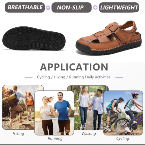 More information about Men's Fisherman Leather Closed Toe Sandals Walking Dress Casual with Adjustable Hook Loop, Summer Light Breathable Athletic Sport Casual Sandals for Hiking Water