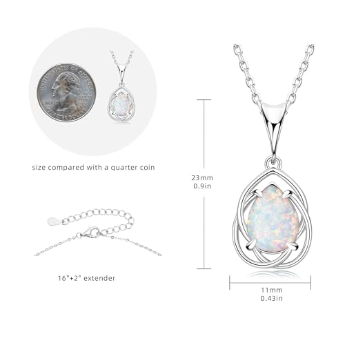 YUNKAI Opal Necklaces for Women Sterling Silver, Pear/Round/Oval Created-Opal Pendants, Dainty Vintage Necklace Fine Jewelry Gift for Birthdays Anniversaries, October Birthstone Pendant 6