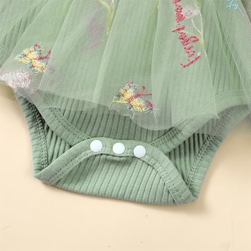 Baby Girl Fall Clothes Cute Long Sleeve Mesh Tutu Romper Dress Infant Newborn Dress (MAMA'S GIRL-Green, 6-12 Months)